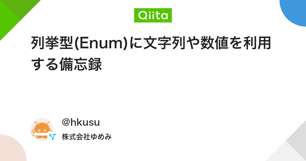 [] 列挙型(Enum)に文字列や数値を利用する備忘録 – Qiita