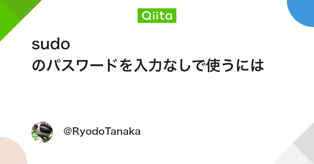 [] sudo のパスワードを入力なしで使うには #Linux – Qiita